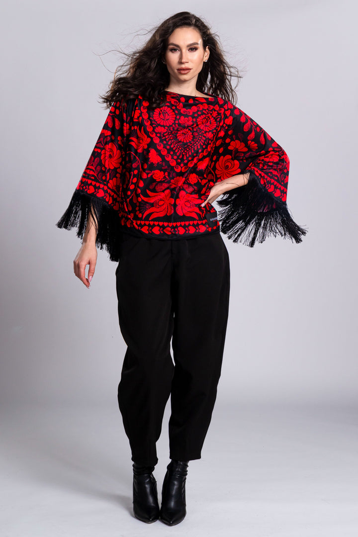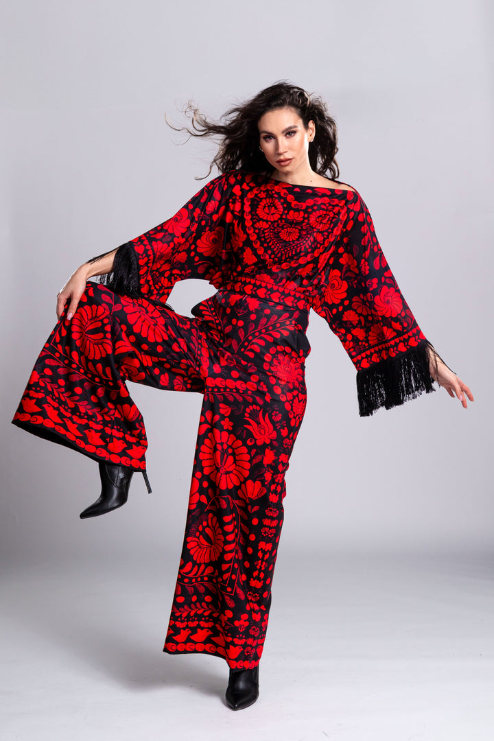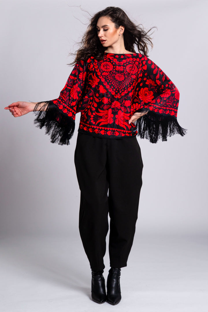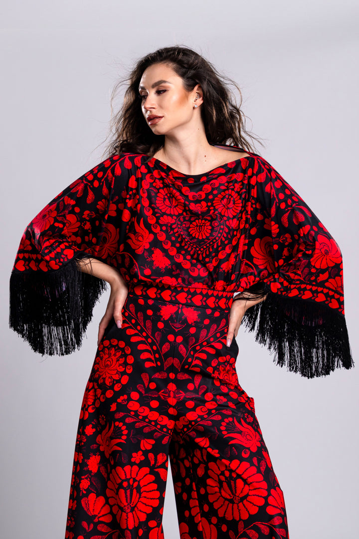 Válassz magadnak izgalmas fazonjainkból, aminek összhatását bézs, fekete alapra printelt piros MATYÓ virág és levél motívumok teszik különlegessé.