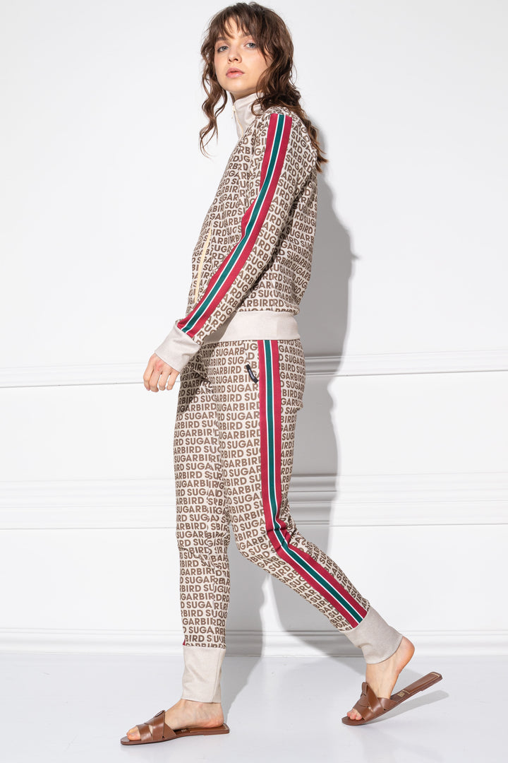 Hosszú, szűk szárú, svédzsebes csípő fölé érő nadrág. Alján széles félbehajtott pánttal szegett, derekában gumizott. A fazont SUGARBIRD feliratú címkével díszítettük.