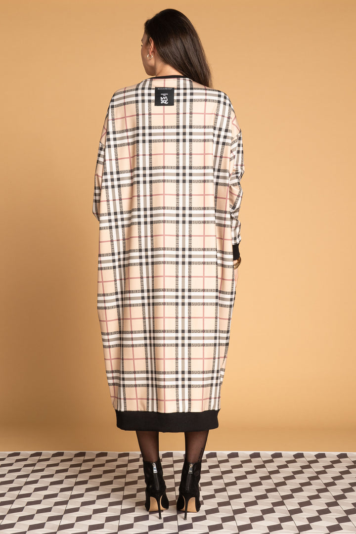 Fedezd fel az új LONDON QUEEN kollekciónk darabjait, melyet a bézs kockás minta időtlen eleganciája és az ikonikus QUEEN és SUGARBIRD feliratok kombinációja jellemez.