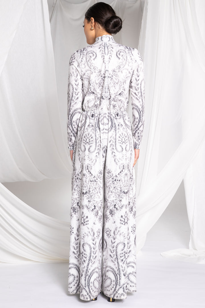 Hosszú és bő szárú, hosszú ujjú, laza fazonú overál. Nyakát széles garbós pánt szegi, alatta a nyakkör húzott. Háta közepén zipzárral nyitható. Dereka gumizott, ujjára SUGARBIRD feliratú címkét varrtunk.