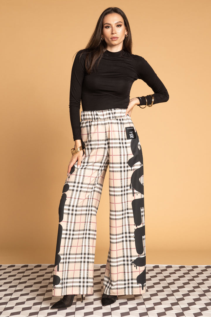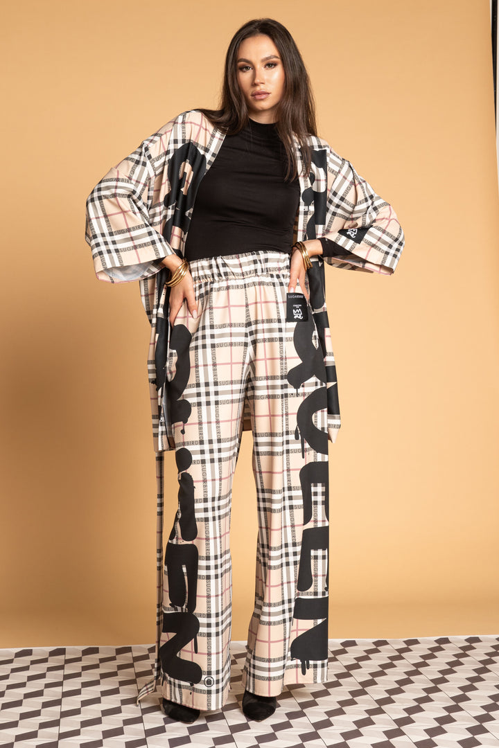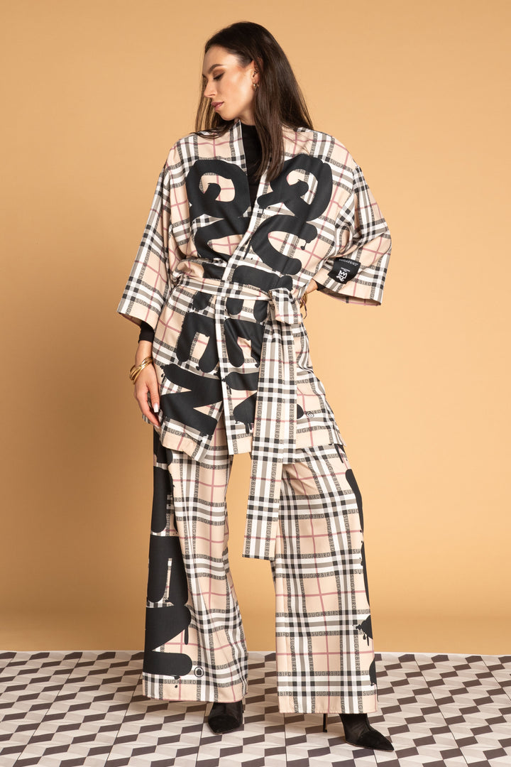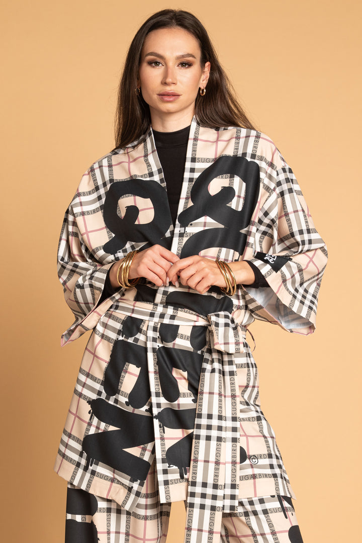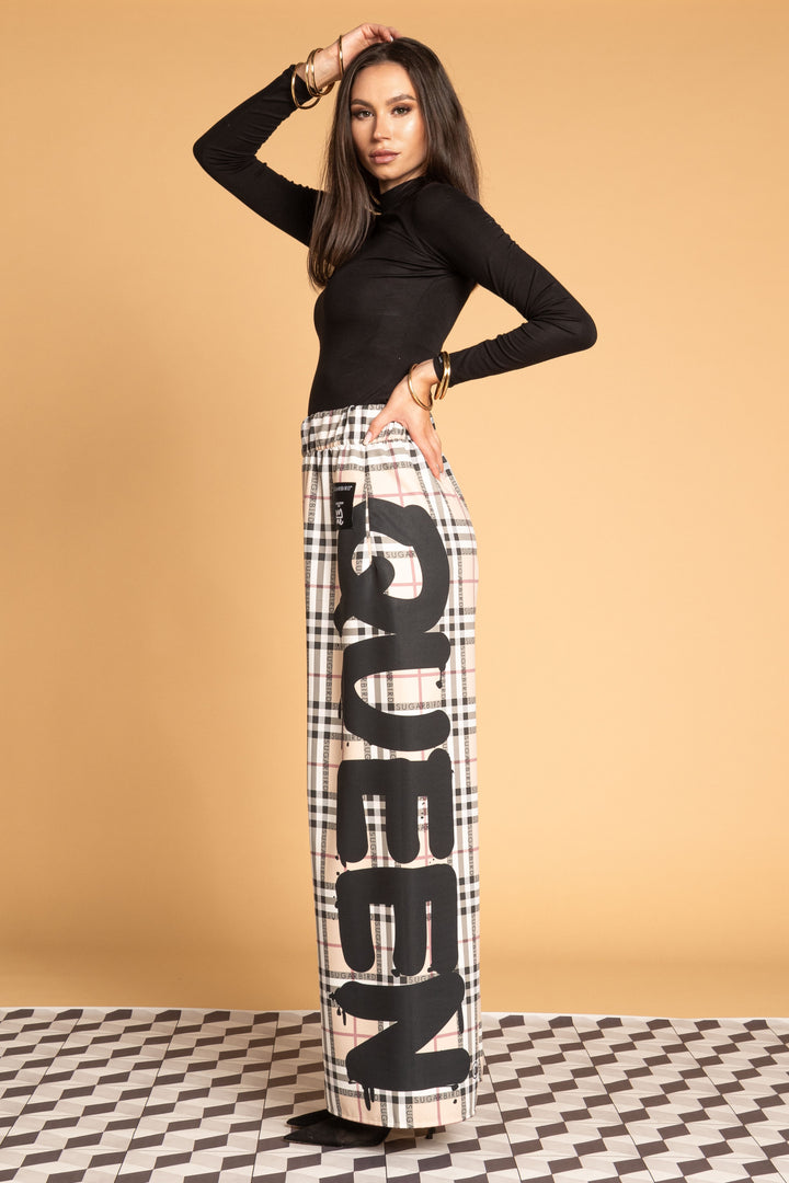 Fedezd fel az új LONDON QUEEN kollekciónk darabjait, melyet a bézs kockás minta időtlen eleganciája és az ikonikus QUEEN és SUGARBIRD feliratok kombinációja jellemez.