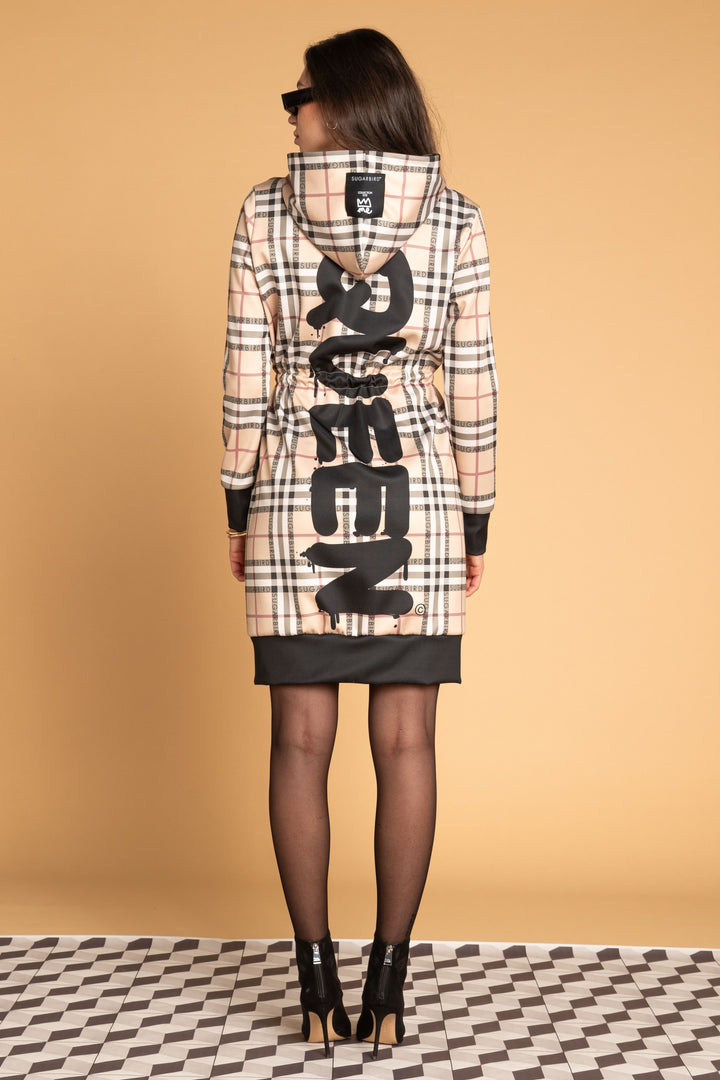 Fedezd fel az új LONDON QUEEN kollekciónk darabjait, melyet a bézs kockás minta időtlen eleganciája és az ikonikus QUEEN és SUGARBIRD feliratok kombinációja jellemez.