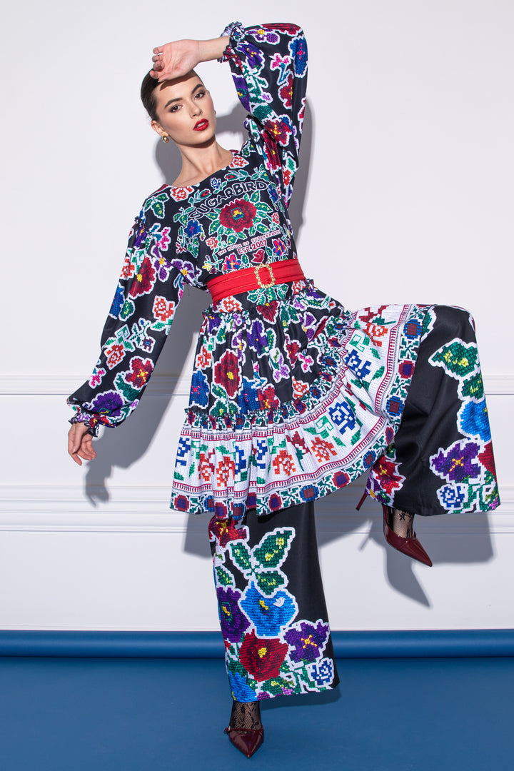 Fedezd fel új Csángó kollekciónk különleges darabjait, melyeken fekete alapon a tájegységre jellemző szőttes mintázat és hímzések printjei jelennek meg. Kollekciónk modern köntösbe helyezi a hagyományos erdélyi népviselet színeit és dizájnját.