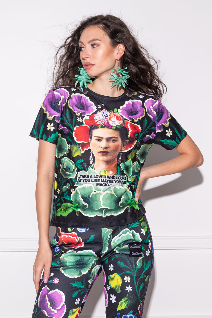 Válogass a SUGARBIRD X FRIDA KAHLO kollekció friss kínálatából, melynek darabjait színes alapra printelt, izgalmas színárnyalatokkal játszó, a művésznő által ihletett virág minták és motívumok teszik különlegessé.