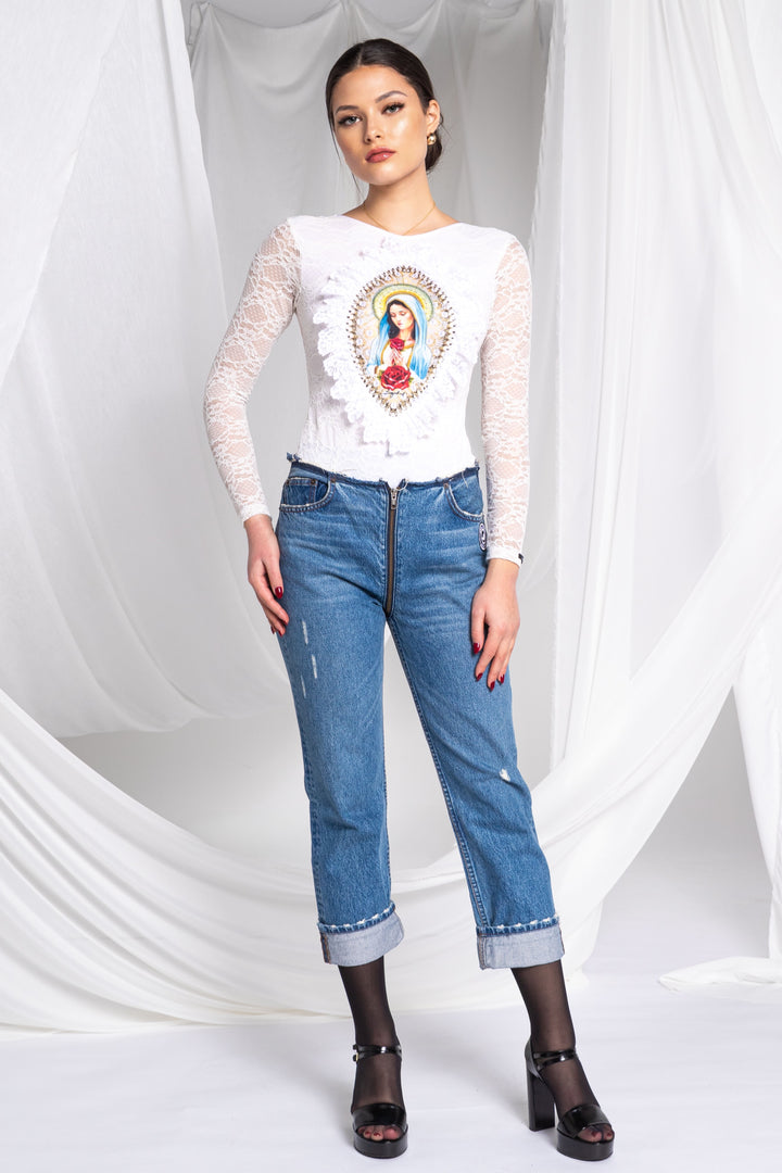 Fedezd fel új Vive Maria kollekciónk különleges darabjait, melyeken a festett Szűz Mária portré és annak motívumai jelennek meg printelt mintaként.