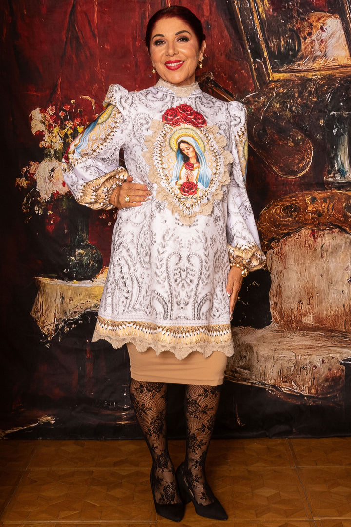 Fedezd fel új Vive Maria kollekciónk különleges darabjait, melyeken a festett Szűz Mária portré és annak motívumai jelennek meg printelt mintaként.