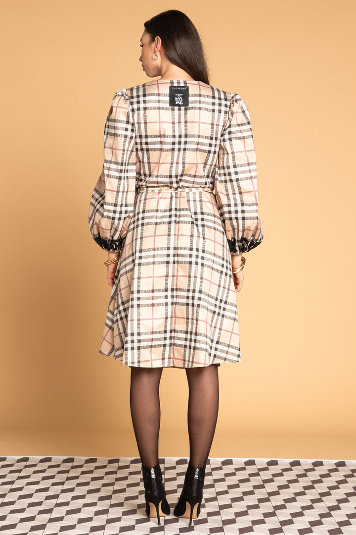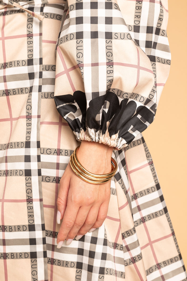 Fedezd fel az új LONDON QUEEN kollekciónk darabjait, melyet a bézs kockás minta időtlen eleganciája és az ikonikus QUEEN és SUGARBIRD feliratok kombinációja jellemez.