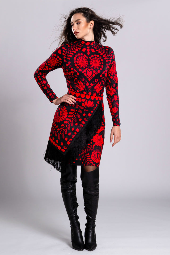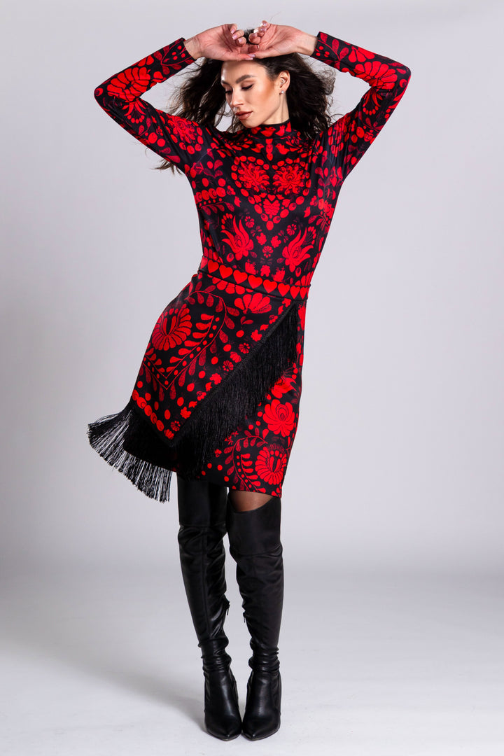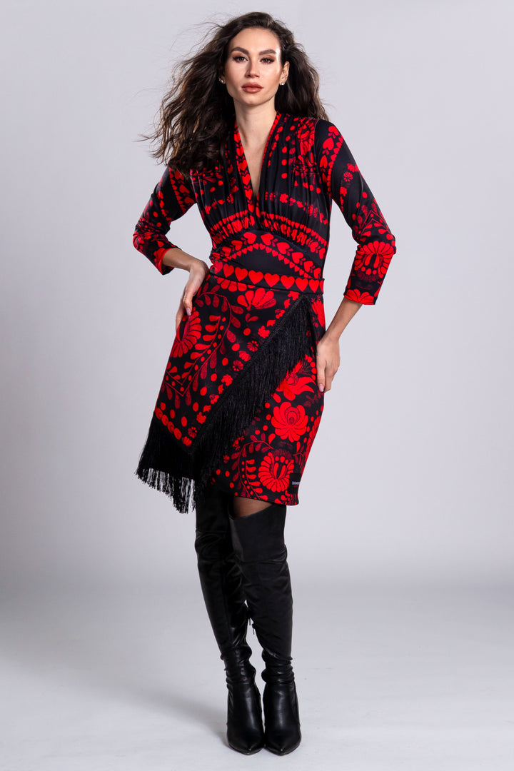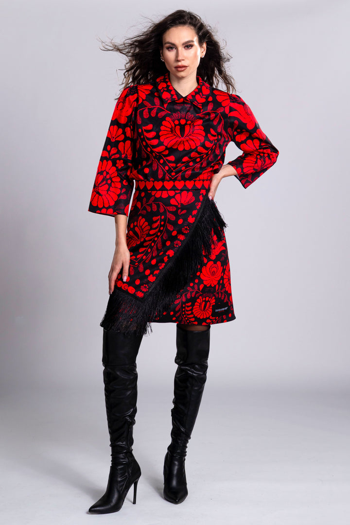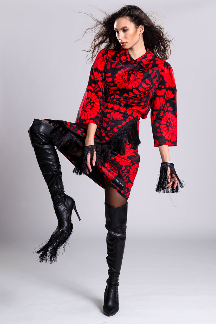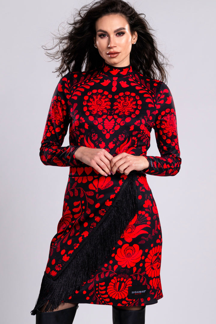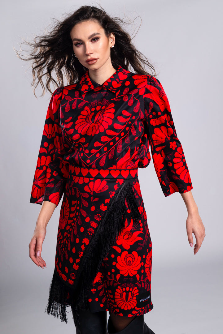 Válassz magadnak izgalmas fazonjainkból, aminek összhatását bézs, fekete alapra printelt piros MATYÓ virág és levél motívumok teszik különlegessé.