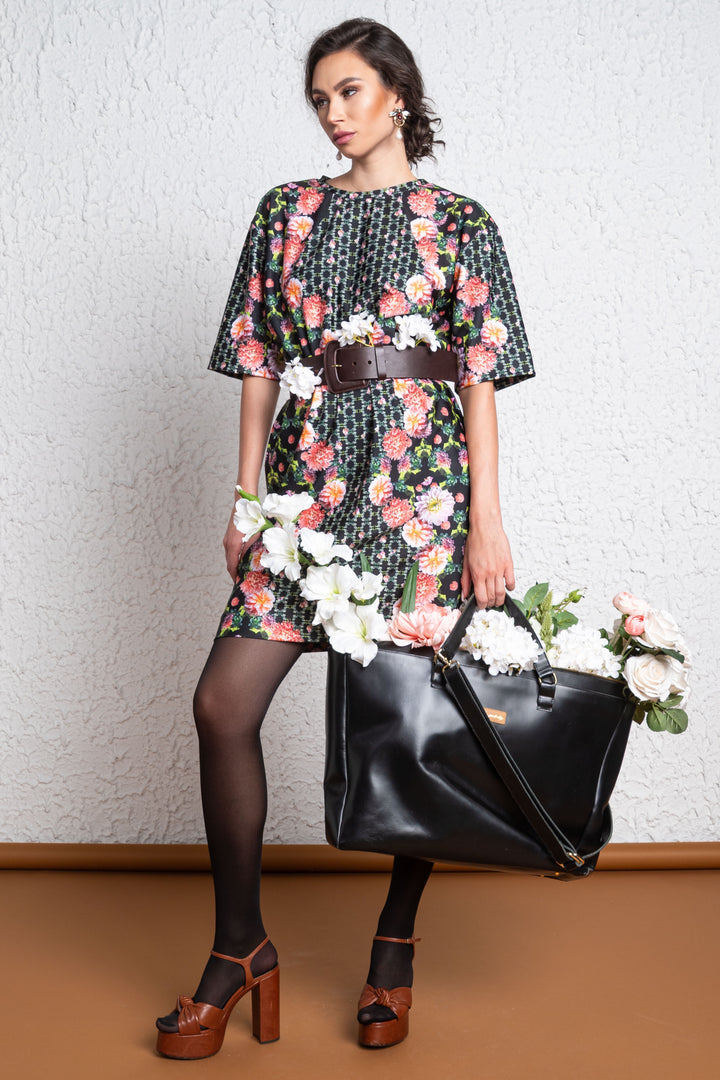 Fedezd fel virágokkal borított FLORI kollekciónk romantikus világát! Fazonjainkat fekete alapon kerti virágok printelt mintája díszíti.