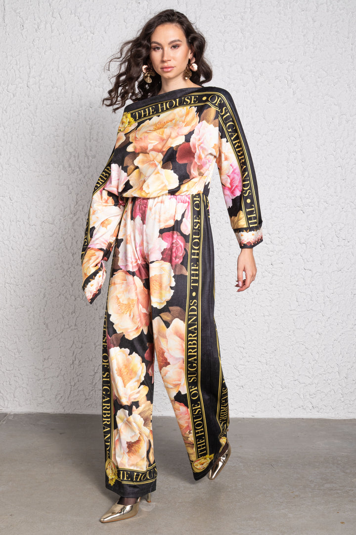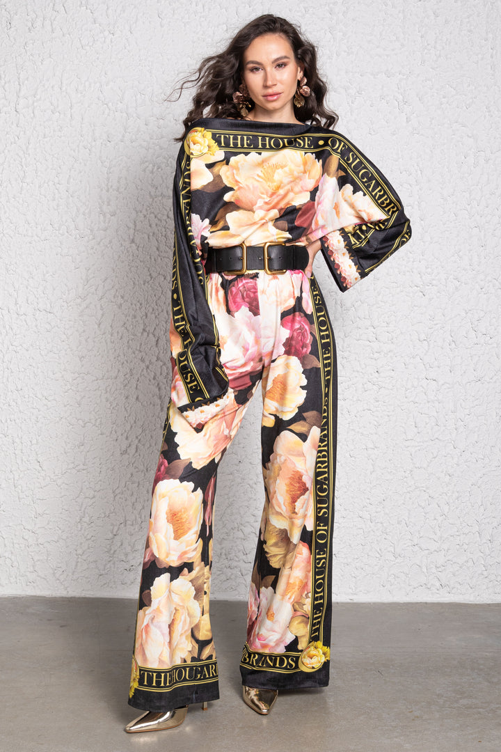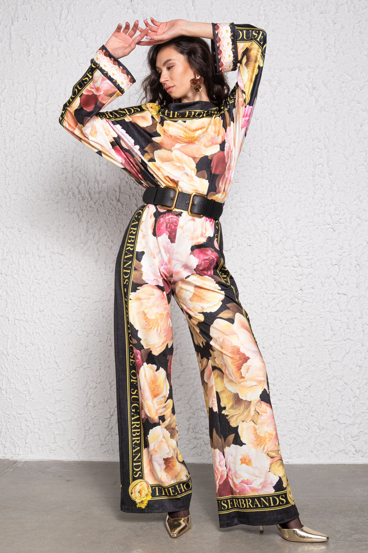Kollekciónk romantikus világát fekete alapra, akvarell technikával festett „LA VIEN EN ROSE” virágok és arany színű „THE HOUSE OF SUGARBRANDS” feliratok printelt mintái teszik elegánssá és különlegessé.