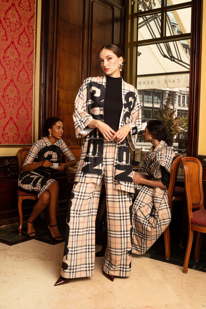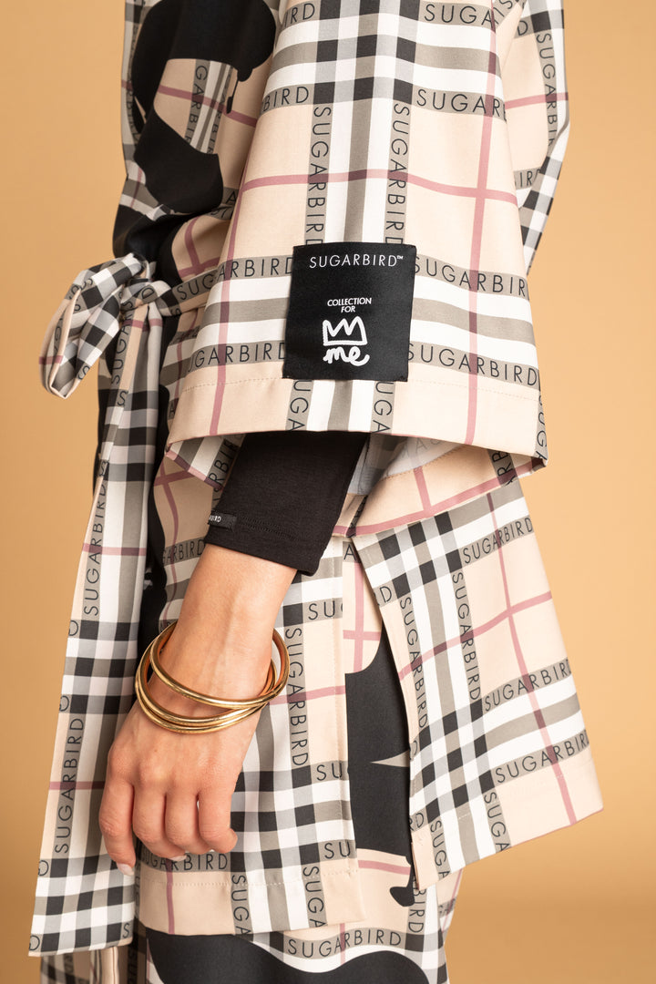 Fedezd fel az új LONDON QUEEN kollekciónk darabjait, melyet a bézs kockás minta időtlen eleganciája és az ikonikus QUEEN és SUGARBIRD feliratok kombinációja jellemez.