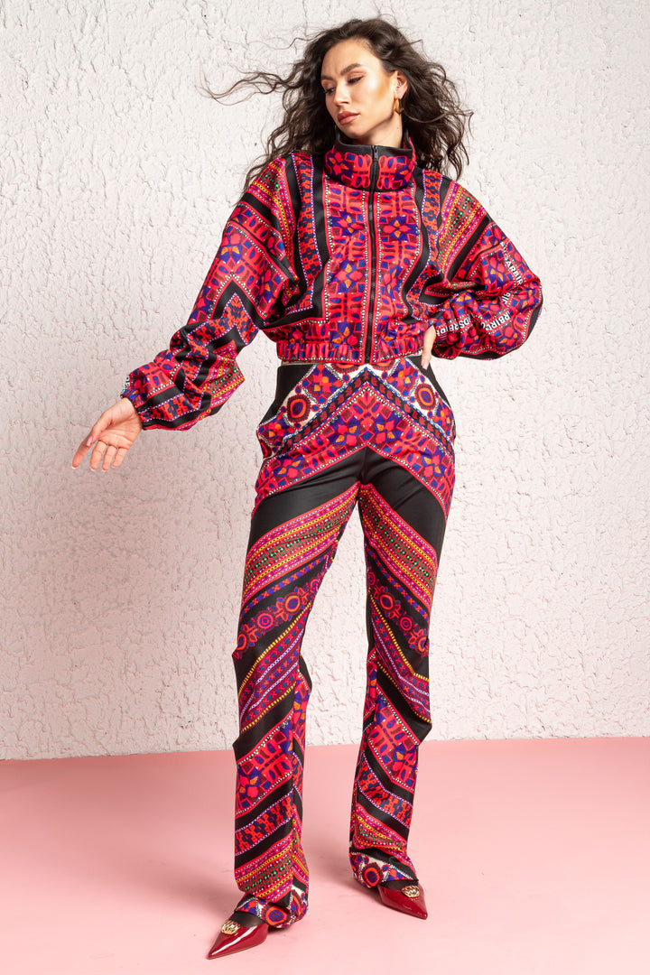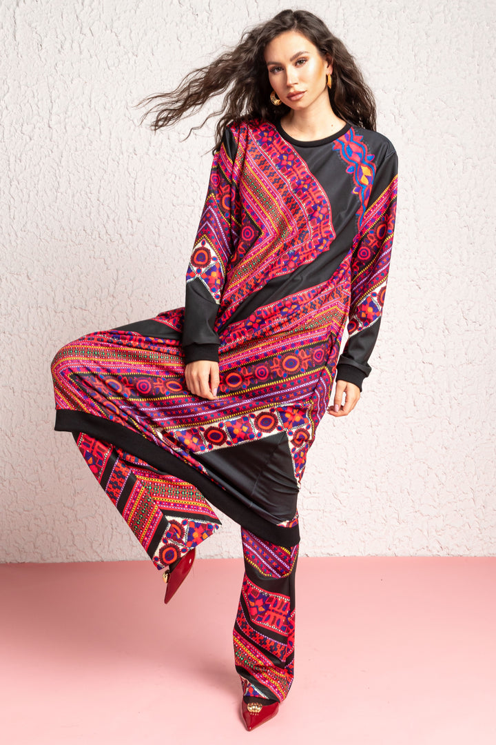 Discover new Csángó The special pieces of our collection, which feature prints of the woven pattern typical of the region on a black background. Our collection puts the colors and designs of the traditional Transylvanian folk costume in a modern guise.