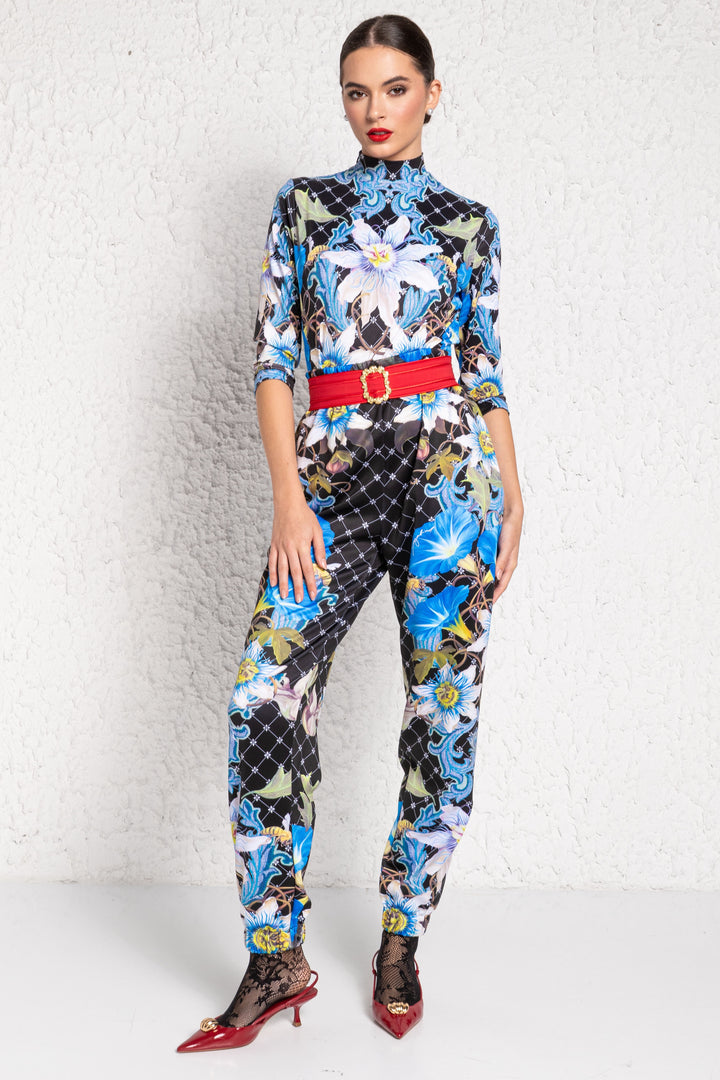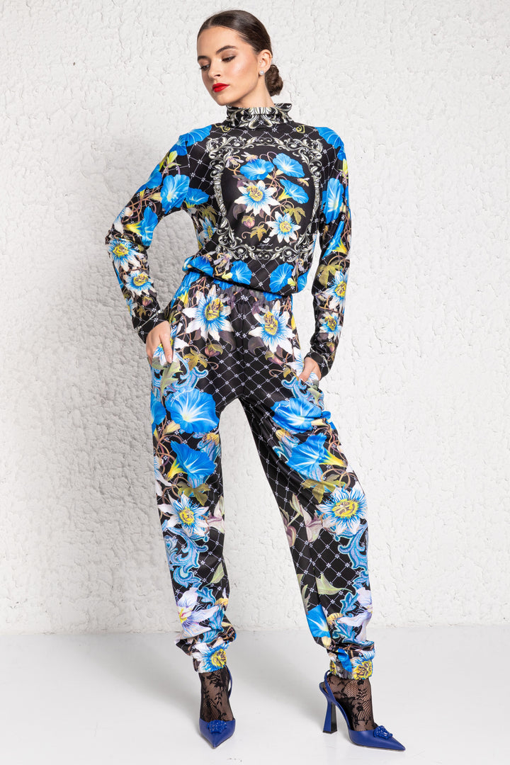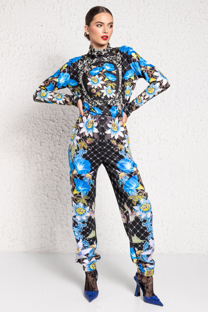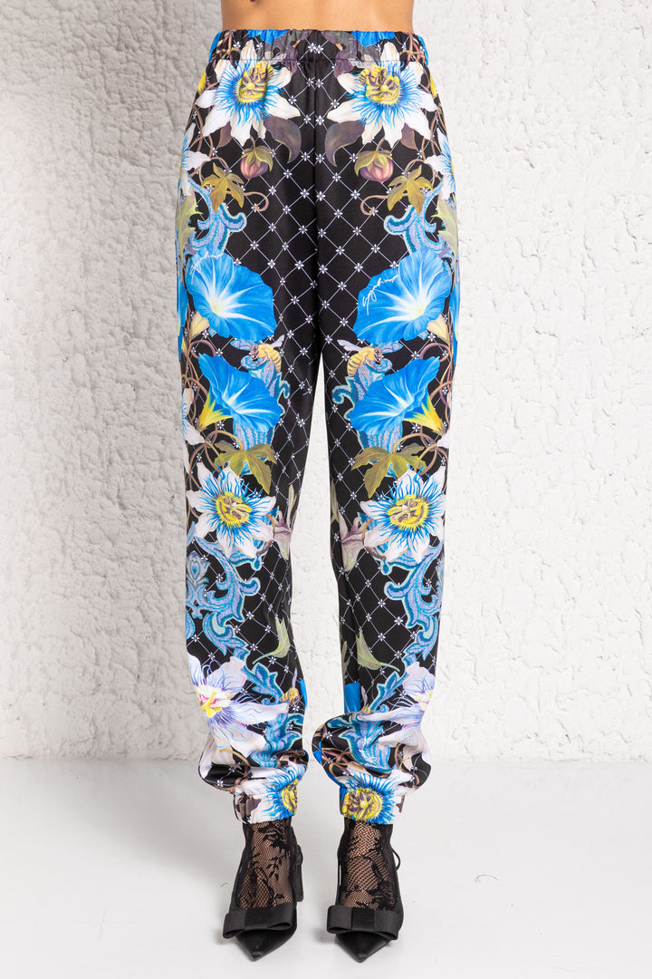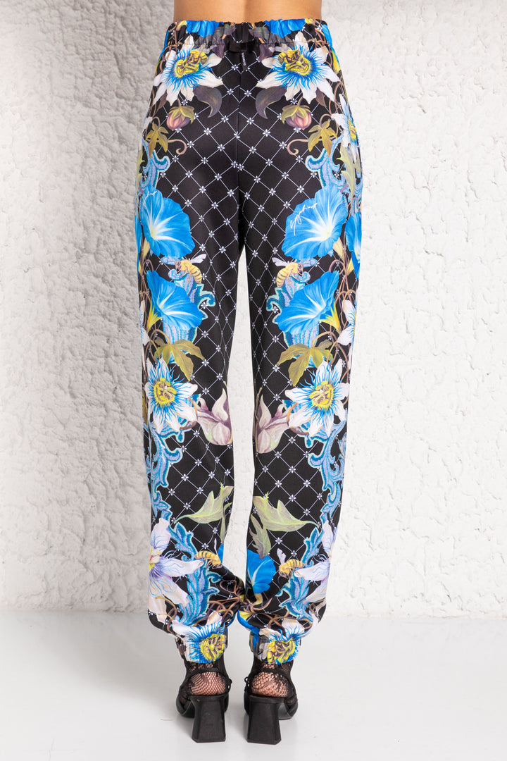 Long-legged, high-waisted, loose-fitting trousers. Elasticated bottom and waist, with pockets on the sides. On the back SUGARBIRD It is decorated with a label and a bow accessory.