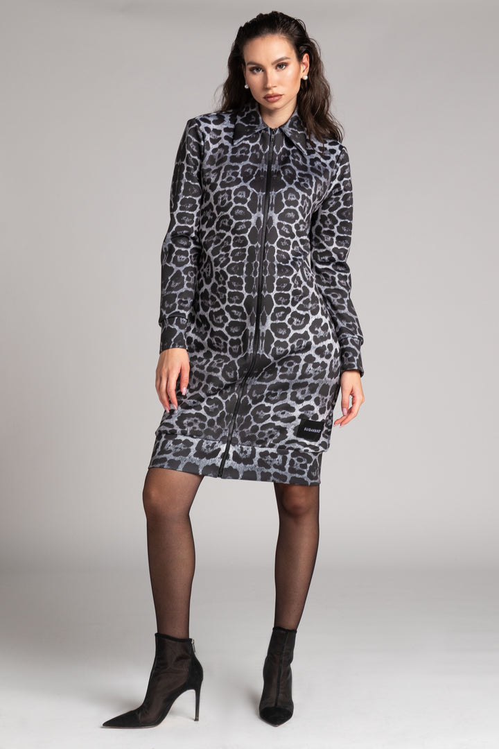 Long-sleeved, knee-length, straight-cut cardigan. The neck is fitted with a collar, and the bottom and bottom of the sleeves are edged with wide, folded straps. It opens in the middle with a zipper at the front, and we have placed pockets on the sides. To the front SUGARBIRD We sewed a label with the inscription.