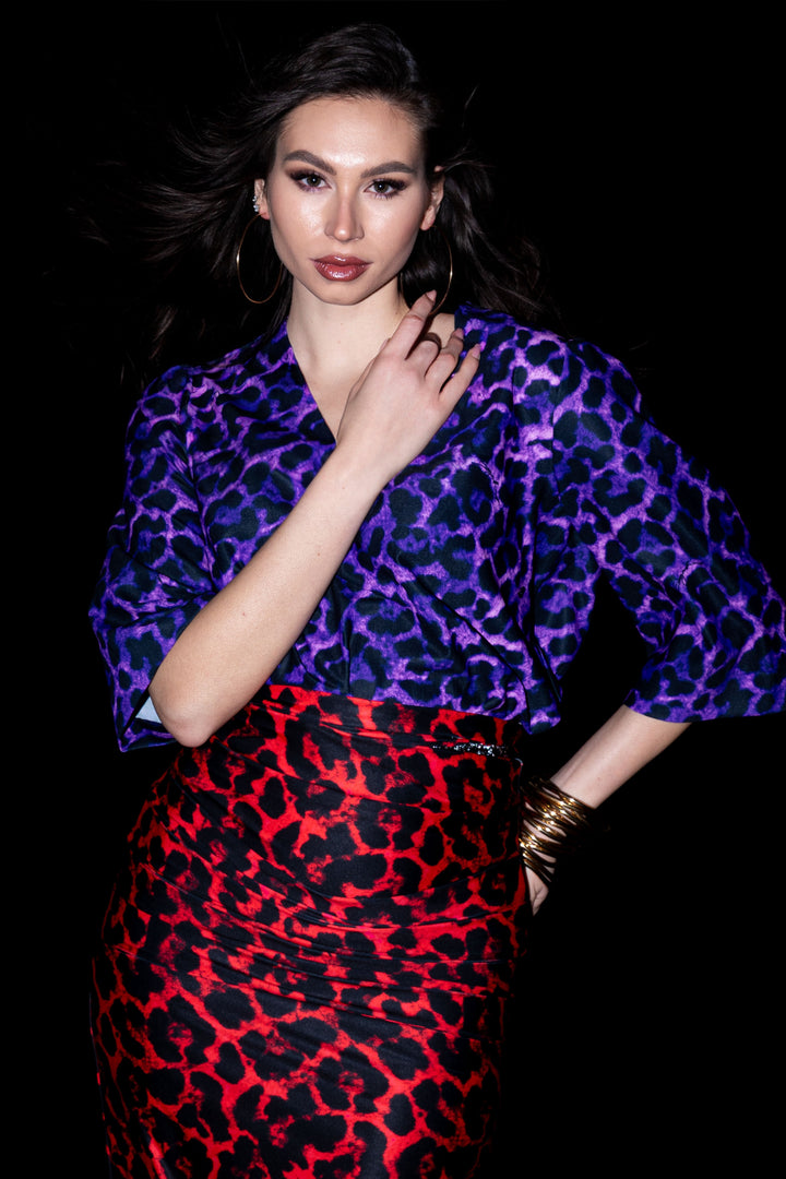 Choose from our feminine styles, the overall effect of which is made exciting and special by the colorful ocelot animal print.