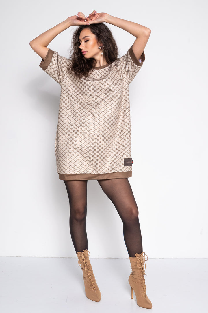 Choose from our stylish styles, the popular TEDDY BUENO SUGARBIRD from our collection, whose elements are made of cream-colored fabric on a dark brown background SUGARBIRD printed with captions.