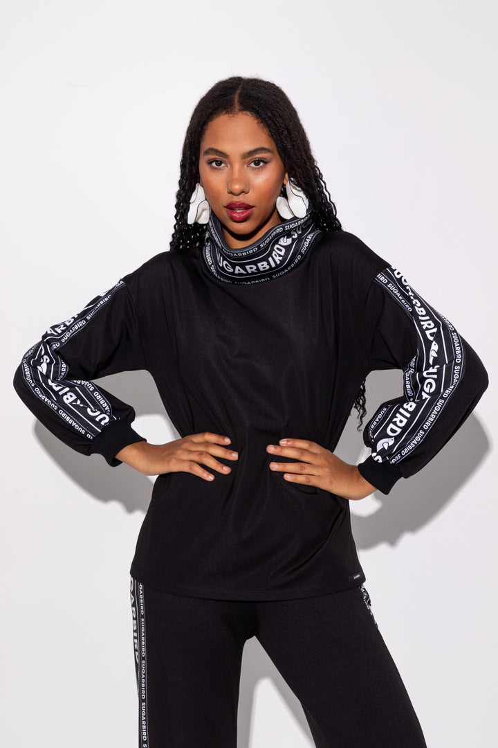 The material is comfortable and stretchy, 82% polyester, 18% elastane. It is available in sizes S-XL.