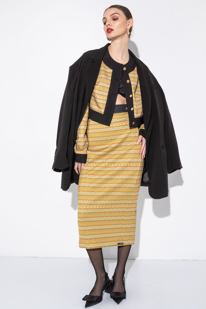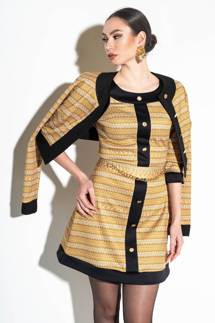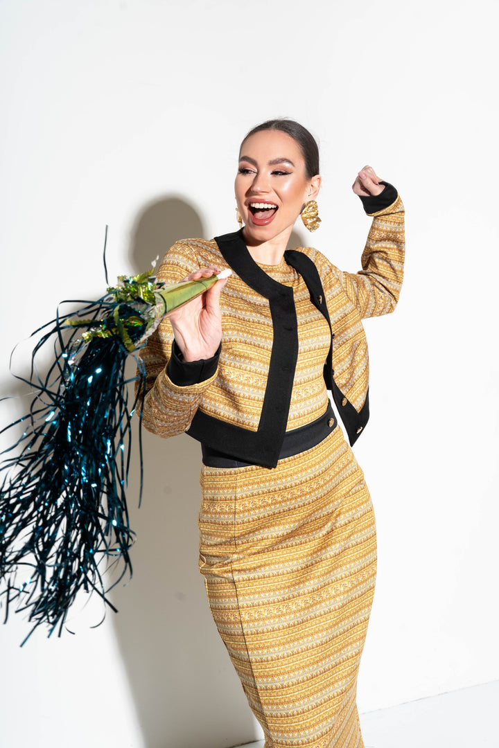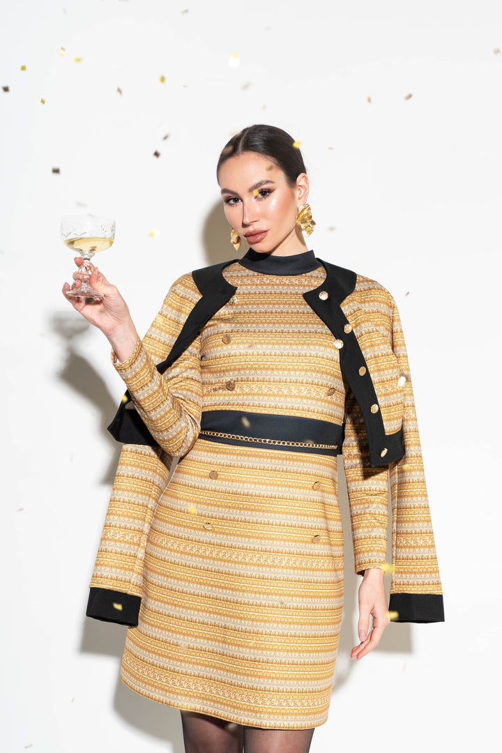 Fedezd fel Gold kollekciónk világát, amely az ünnepi csillogás varázsát és időtlen szabadságát ötvözi. Az autentikus kendőmotívumok elegáns, kortárs sziluetteken és egyedi arany színű sormintából képzett alapra printelve kelnek életre.