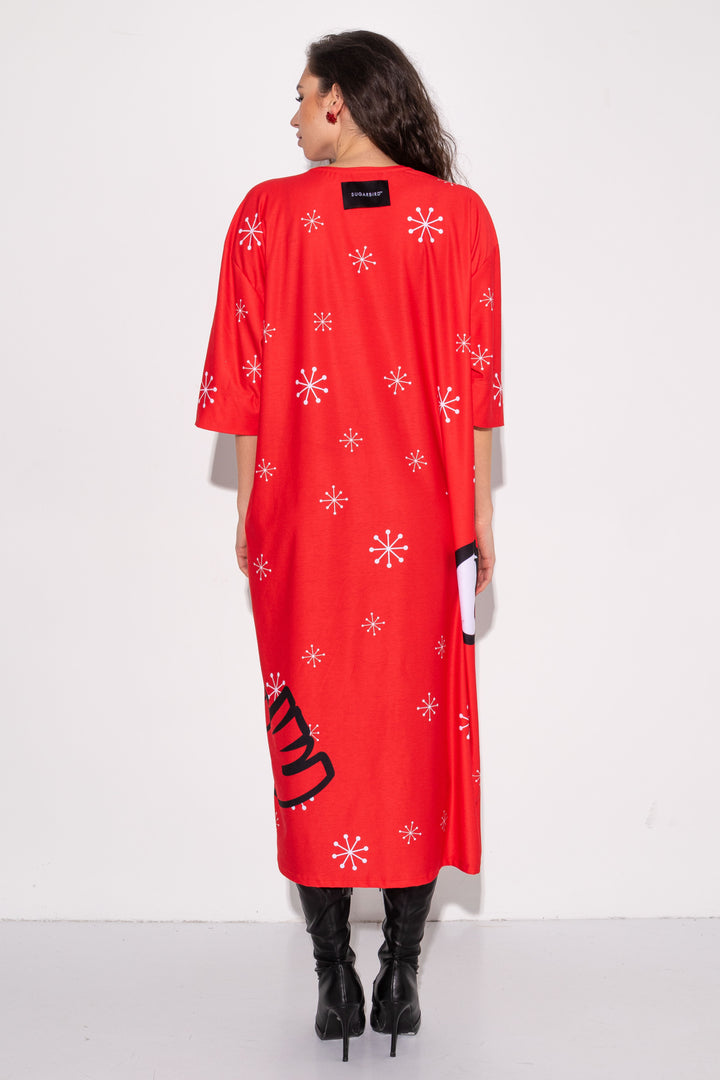 Háromnegyedes ujjú, bő, egyenes fazonú, térd alá érő tunika. Nyaka zárt és kerek, mely félbe hajtott pánttal szegett. Hátára SUGARBIRD feliratú címkét varrtunk.