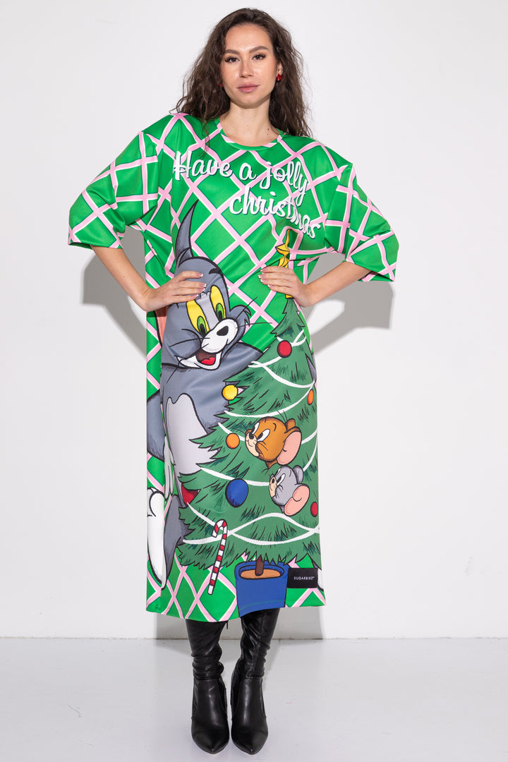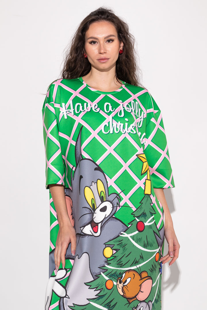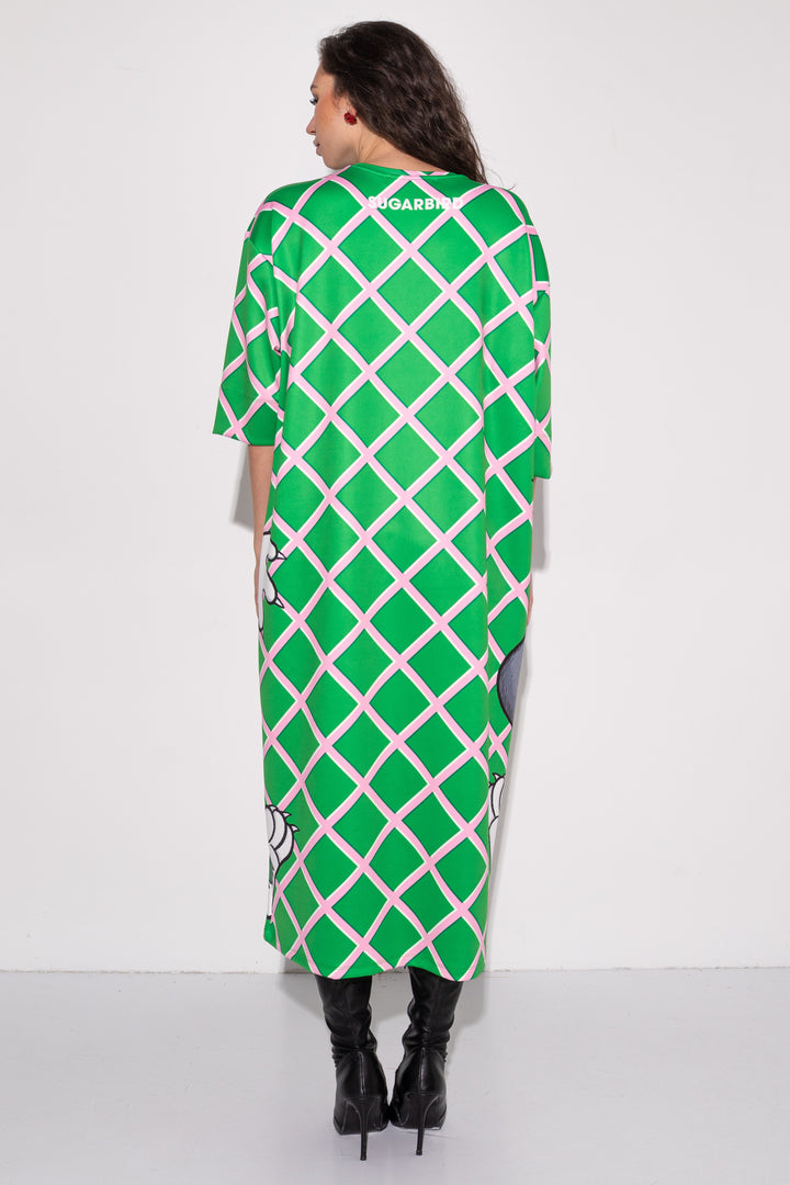Three-quarter sleeves, loose, straight cut, below the knee tunic. The neck is closed and round, which is edged with a strap folded in half. On the back SUGARBIRD We sewed a label with the inscription.