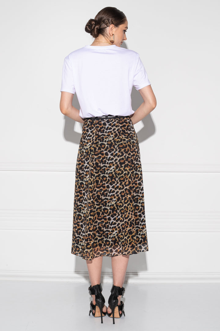 Short-sleeved, hip-length, loose-fitting top. The closed neckline is finished with a tailored, folded-in strap. At the front