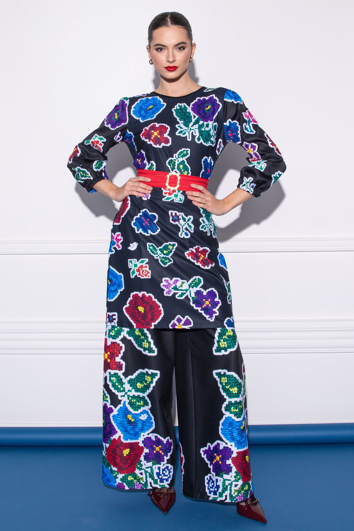 Discover new Csángó The special pieces of our collection, which feature prints of woven patterns and embroidery typical of the region on a black background. Our collection puts the colors and designs of the traditional Transylvanian folk costume in a modern guise.