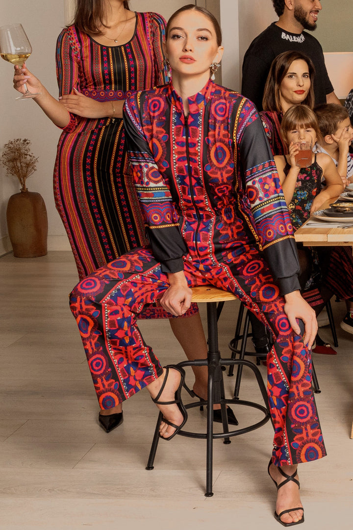Discover new Csángó The special pieces of our collection, which feature prints of the woven pattern typical of the region on a black background. Our collection puts the colors and designs of the traditional Transylvanian folk costume in a modern guise.