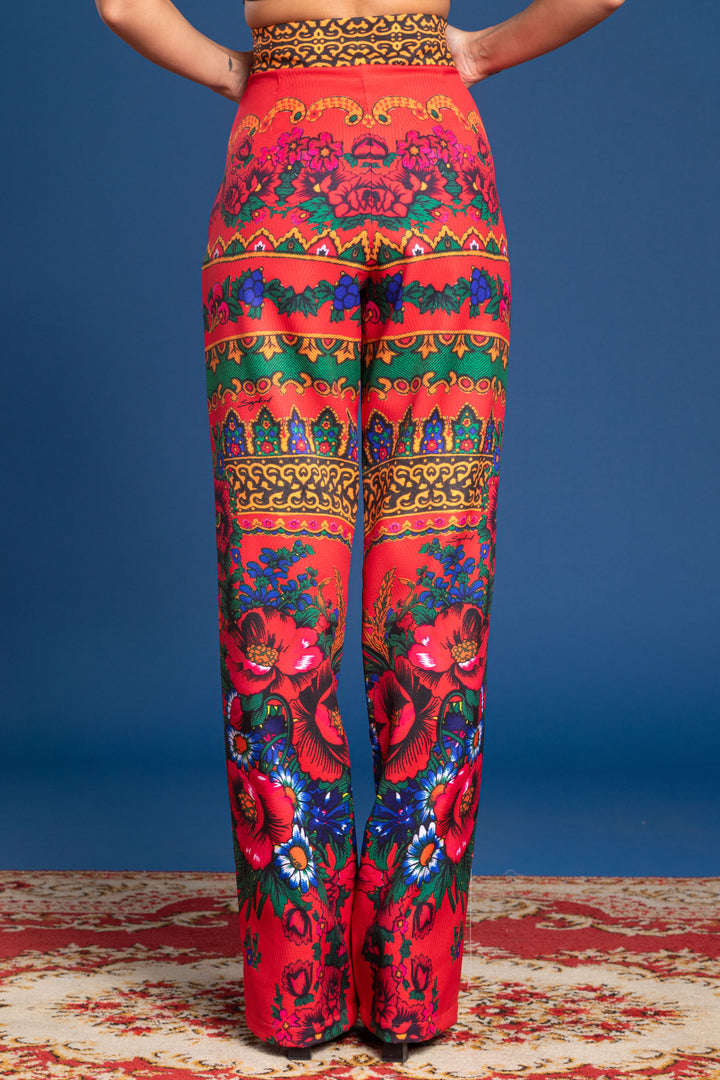 Long and straight-leg trousers with high waist and pockets. Zipper on the left side, with welt pockets SUGARBIRD decorated with a label.
