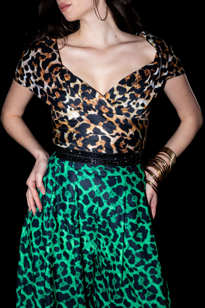 Choose from our feminine styles, the overall effect of which is made exciting and special by the colorful ocelot animal print.